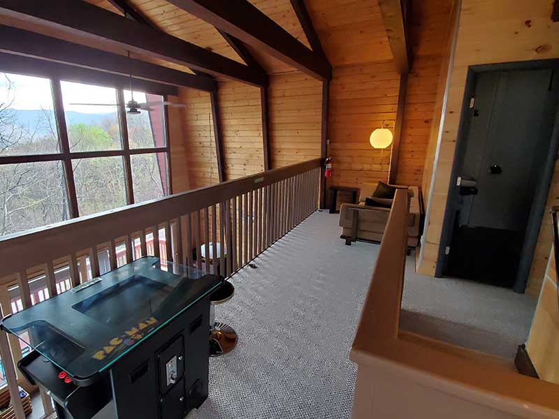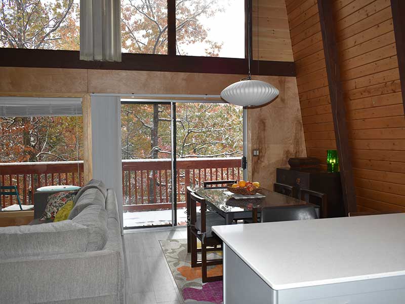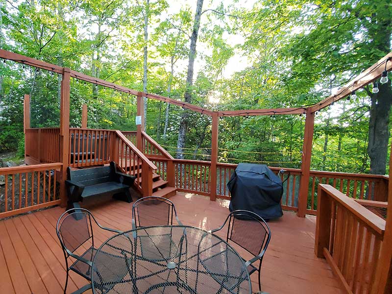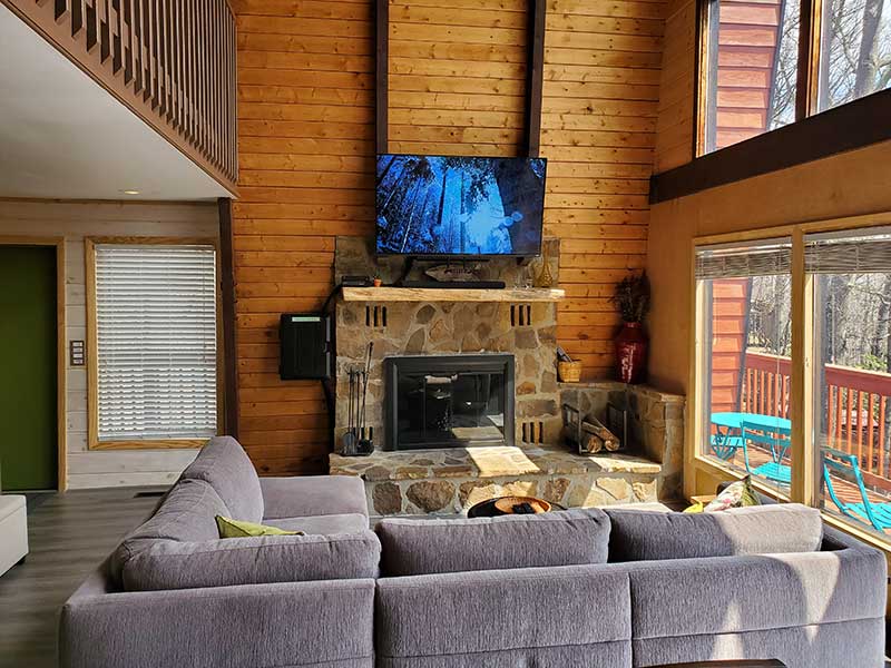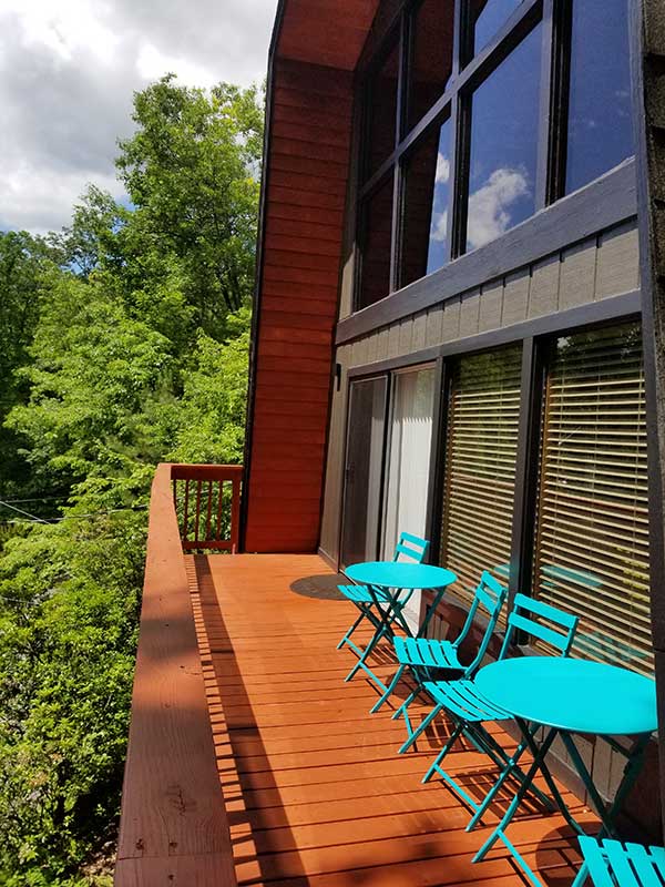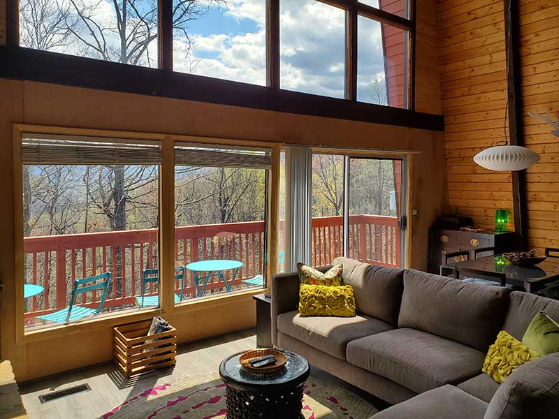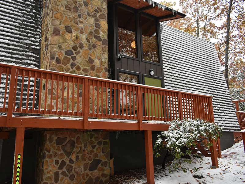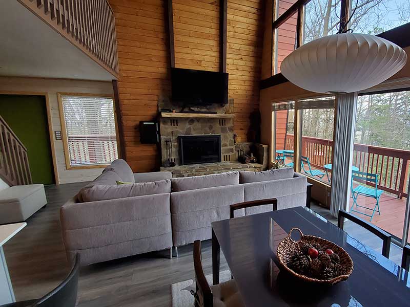 Treetops sits on top of a wooded ridge with forest and mountain views from all sides. Specifically, the front wall of windows is set up high, looking towards Mt. Leconte with expansive winter views. Expect excellent natural light at the Chalet all day long! Also, in season, you are likely to see black bears as a regular bear trail runs across the ridge.